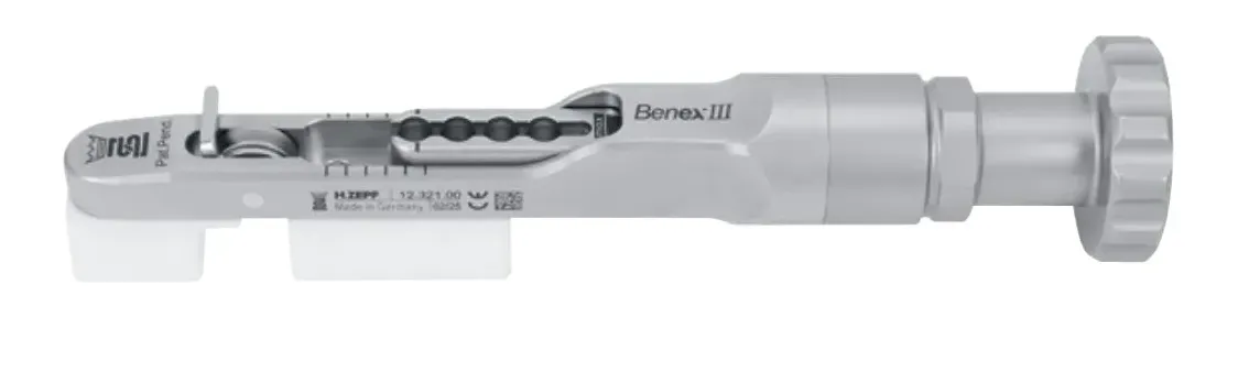 12.320.00 | Benex® III Basic-Kit consisting of: Benex® III Extractor, 2 Drills per size, 2 Screws per size, 2 Pullropes, Driver Guide, Quadrant Support and Replacement Supports, in Washbasket 1/2 | 1 piece |
